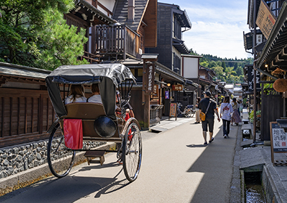 江戸時代の面影が漂う街並みなどが広がる人気の観光エリアです。春と秋には高山祭が開催されます。飛騨牛や日本酒などのグルメも愉しめます。