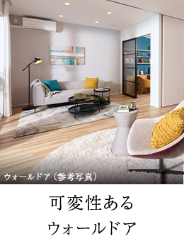 リビング・ダイニングと隣接する洋室の仕切りにはウォールドアを採用。広々とした空間での寛ぎも、プライベートな時間も自在に叶えます。※一部住戸除く