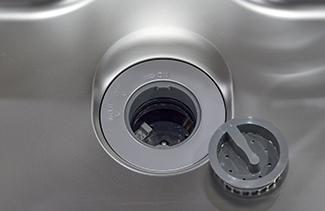 軽く押すだけで排水栓を開閉、手を濡らさずに排水が可能です。