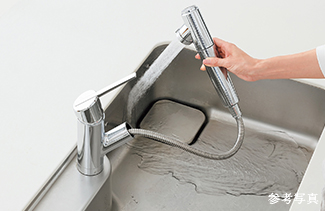 美味しい水が愉しめる浄水器一体型。ハンドシャワータイプなのでお掃除にも便利です。