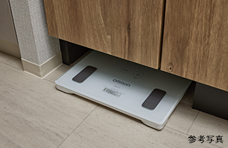 洗面台の足元にヘルスメーター置き場を確保しました。