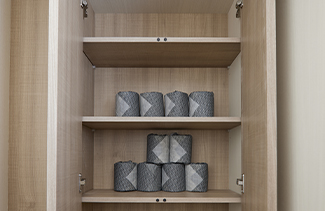 整理しやすく収納力も豊富。扉は静かに、ゆっくりと閉まるソフトクローズ機能付です。
