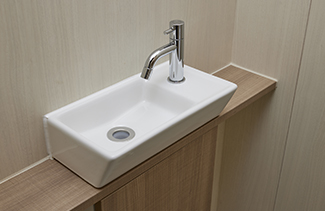 スタイリッシュな角型コンパクトデザインの手洗器を設置しました。