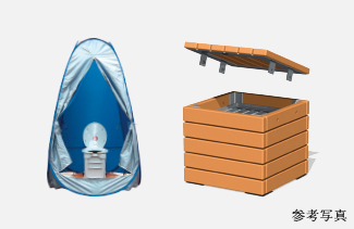 災害による断水でトイレが使えないときでも安心です。平常時は敷地内のスツールとして、災害時には炊き出しかまどとして使用。内部に五徳や風防も装備しています。