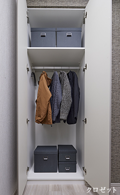 上部に棚を設けるなど工夫を凝らしたクロゼットはスマートながらも機能性の高い収納スペース。プライベートな空間にぴったりの使い心地です。